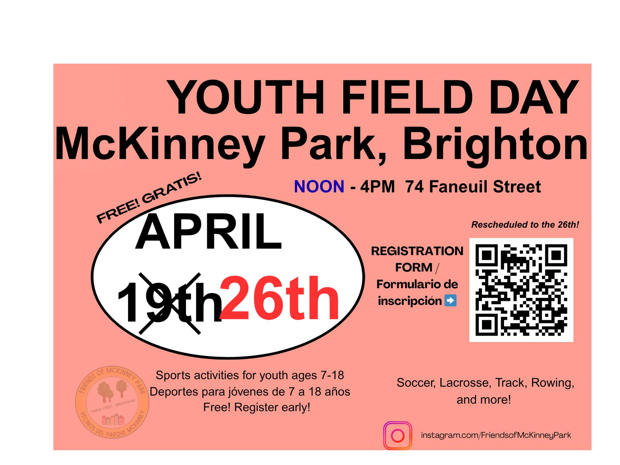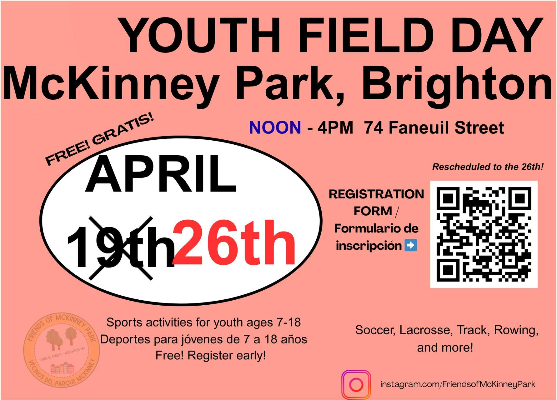 WHERE: McKinney Park, 74 Faneuil St, Allston, MA 02135 ·