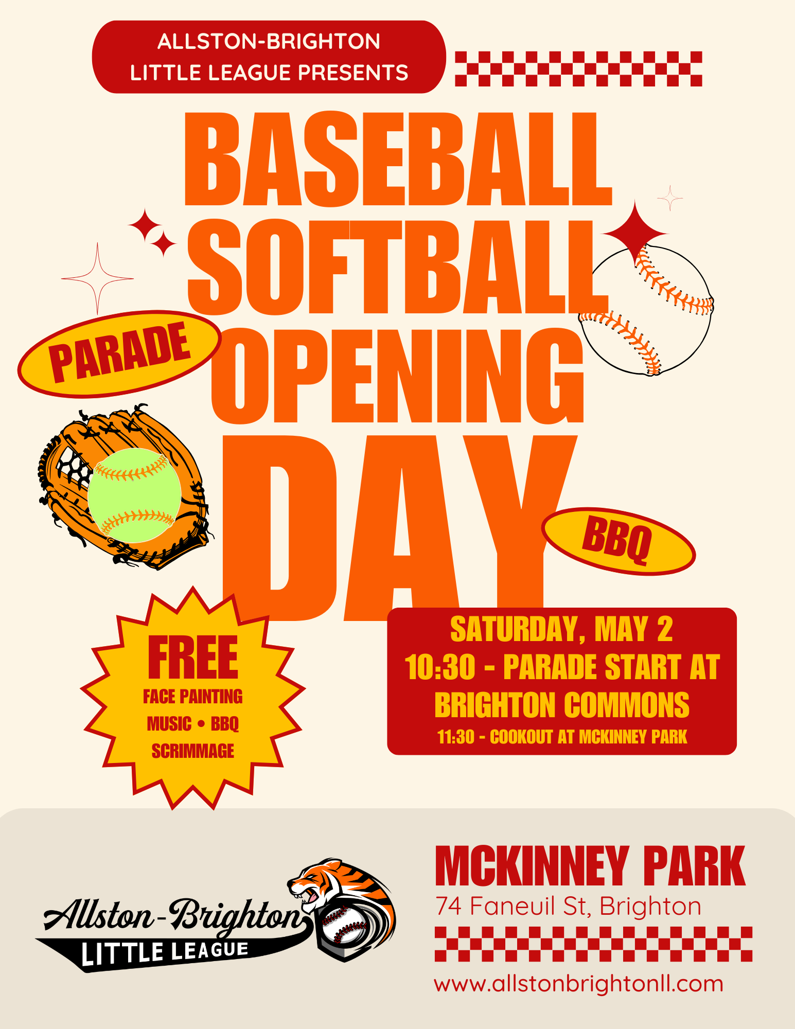 WHERE: McKinney Park (74 Faneuil St – Tee Ball/Instructional) and Hardiman Park (Oak Square/380 Faneuil St – Minors/Majors)
