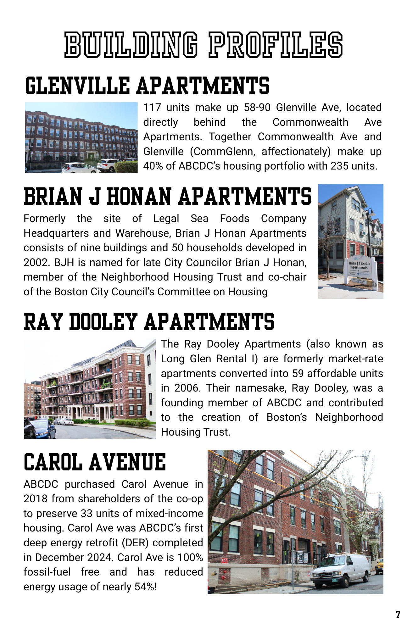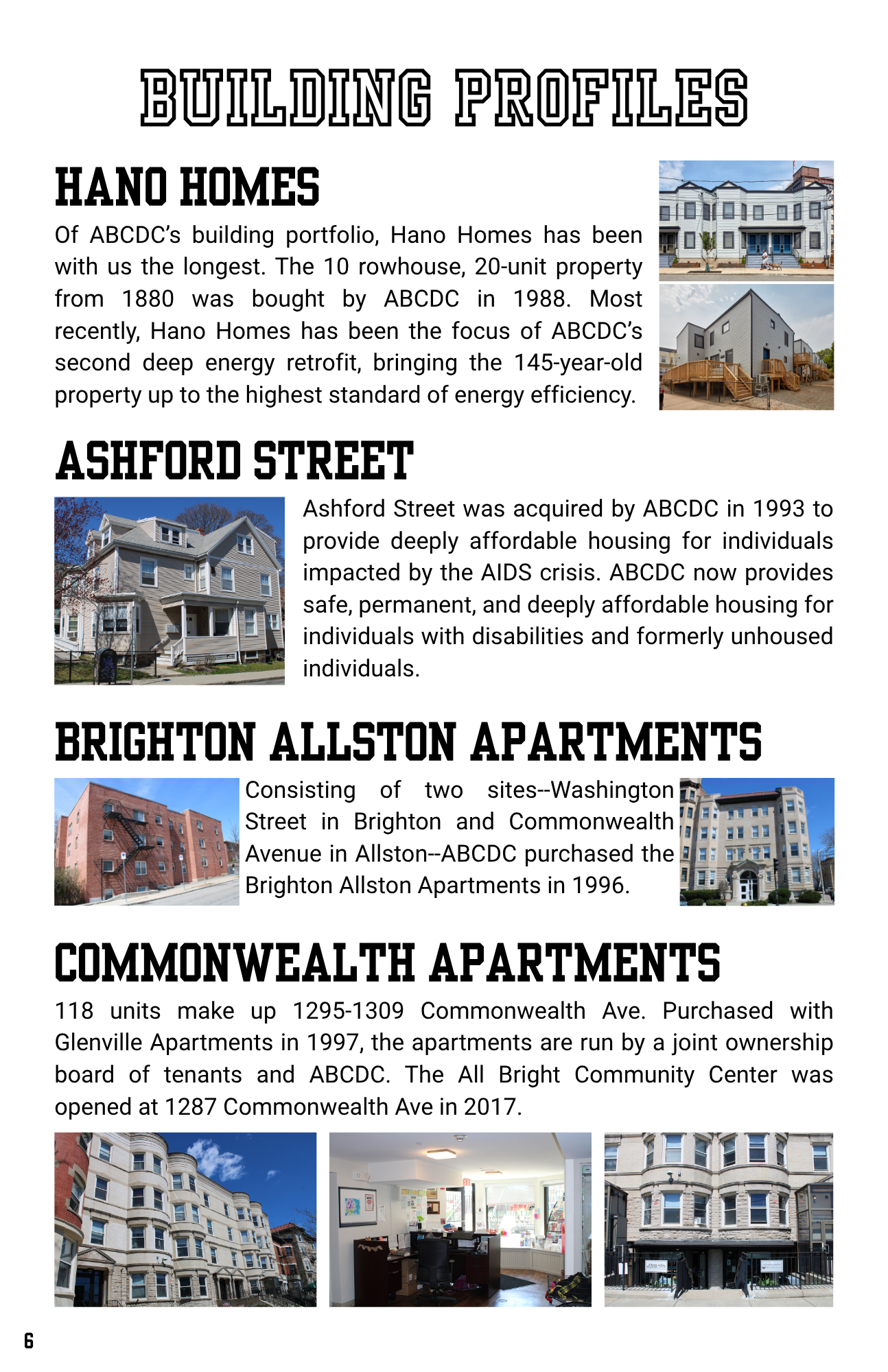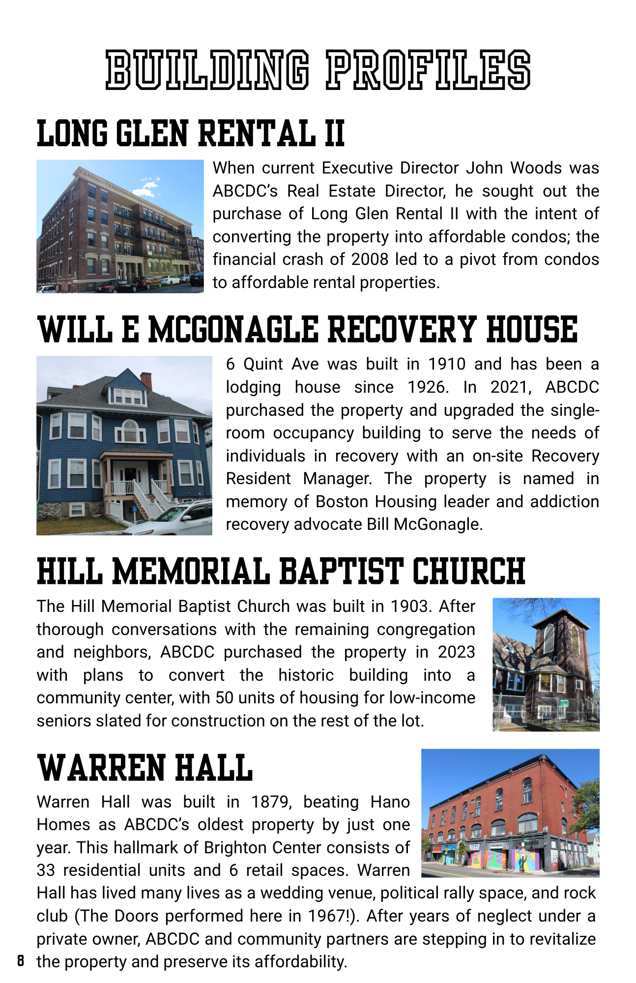 Fun fact: the building profiles are listed in the order they were acquired by ABCDC, mimicking the timeline that was also on display at the October 8th event.