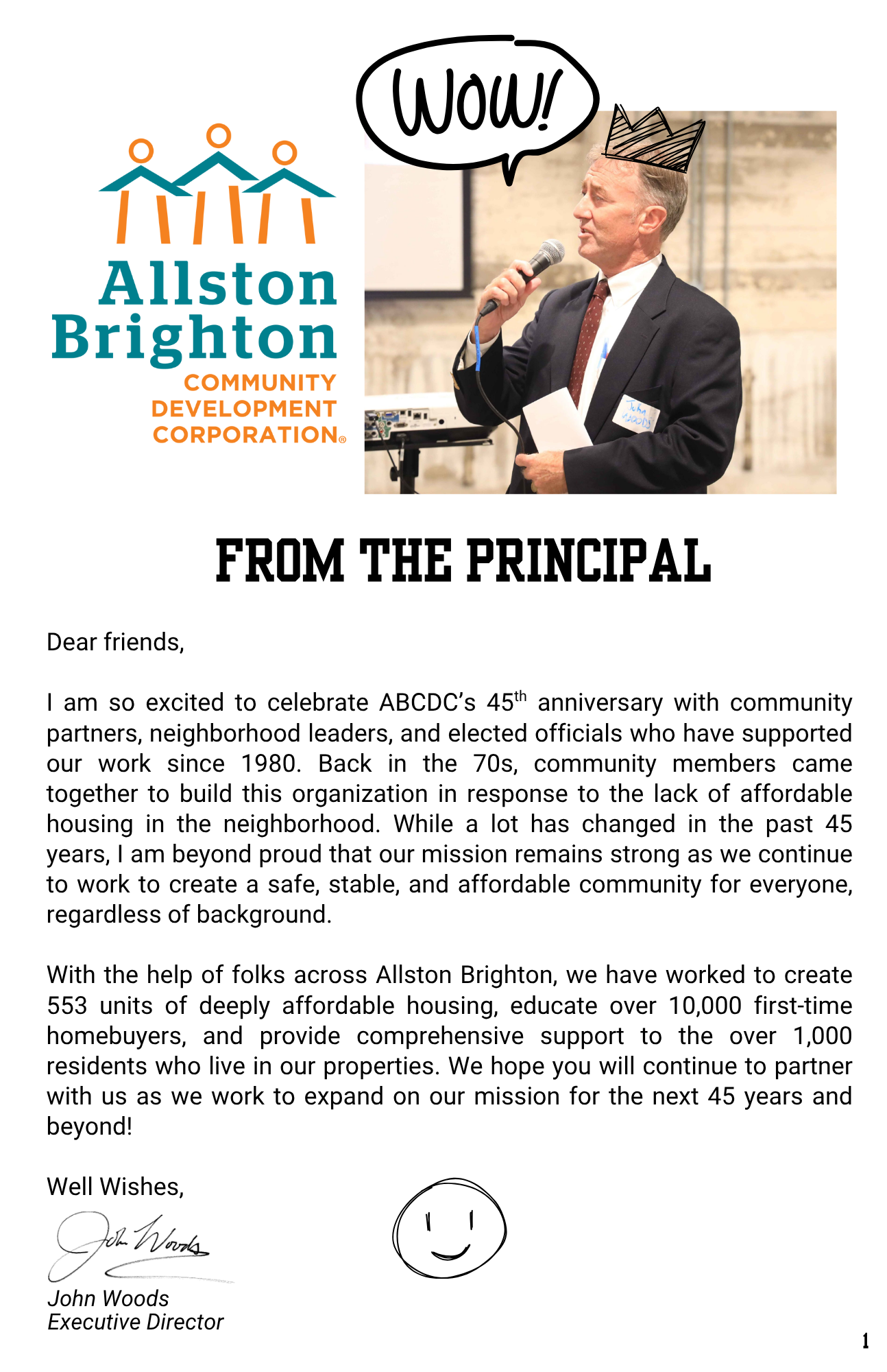 We went with a yearbook theme to highlight our past 45 years of progress! See a note from our ‘principal’ John Woods, hear from the different departments, read up on our building profiles, and check out our superlatives.
