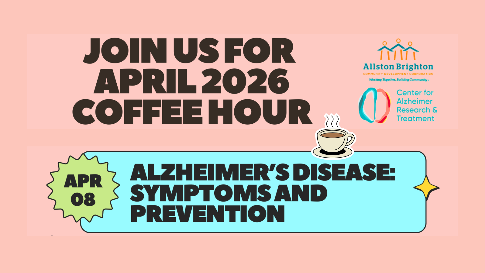 The Center for Alzheimer Research & Treatment from BWH invites community members, friends, and family to an Alzheimer’s Disease Educational Series!