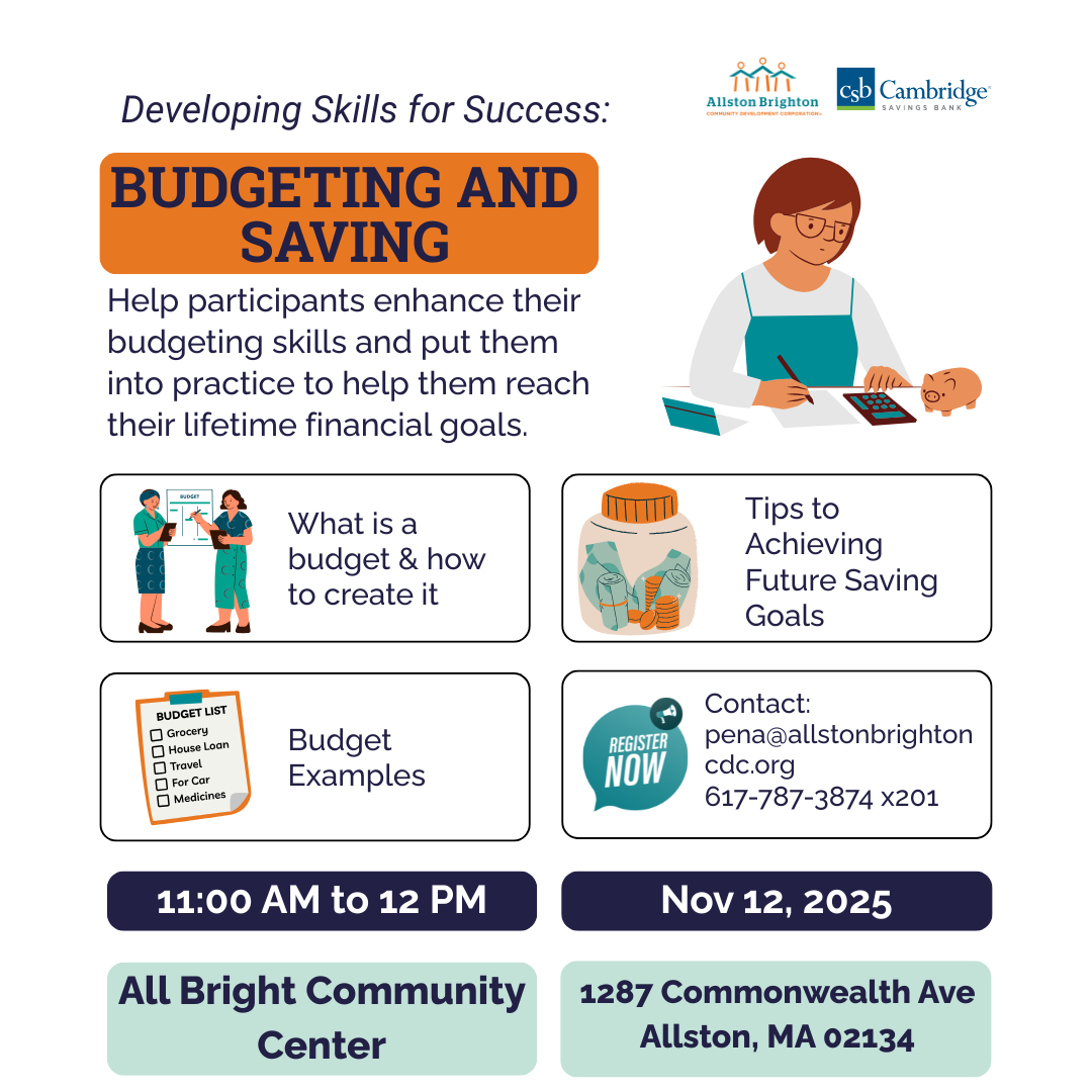 Budgeting and Saving – Financial Literacy & Workforce Development Workshop Series