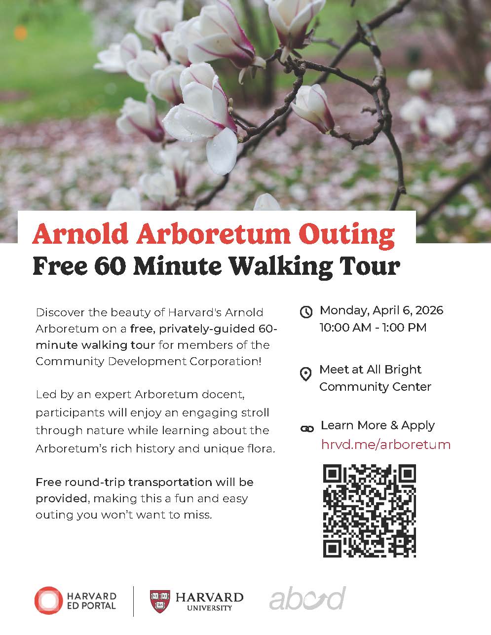 Harvard University will provide free round-trip transportation from the CDC, making this a fun and easy outing you won’t want to miss. The shuttle will pick up at 10am at The Center, 1287 Commonwealth Ave, Allston.